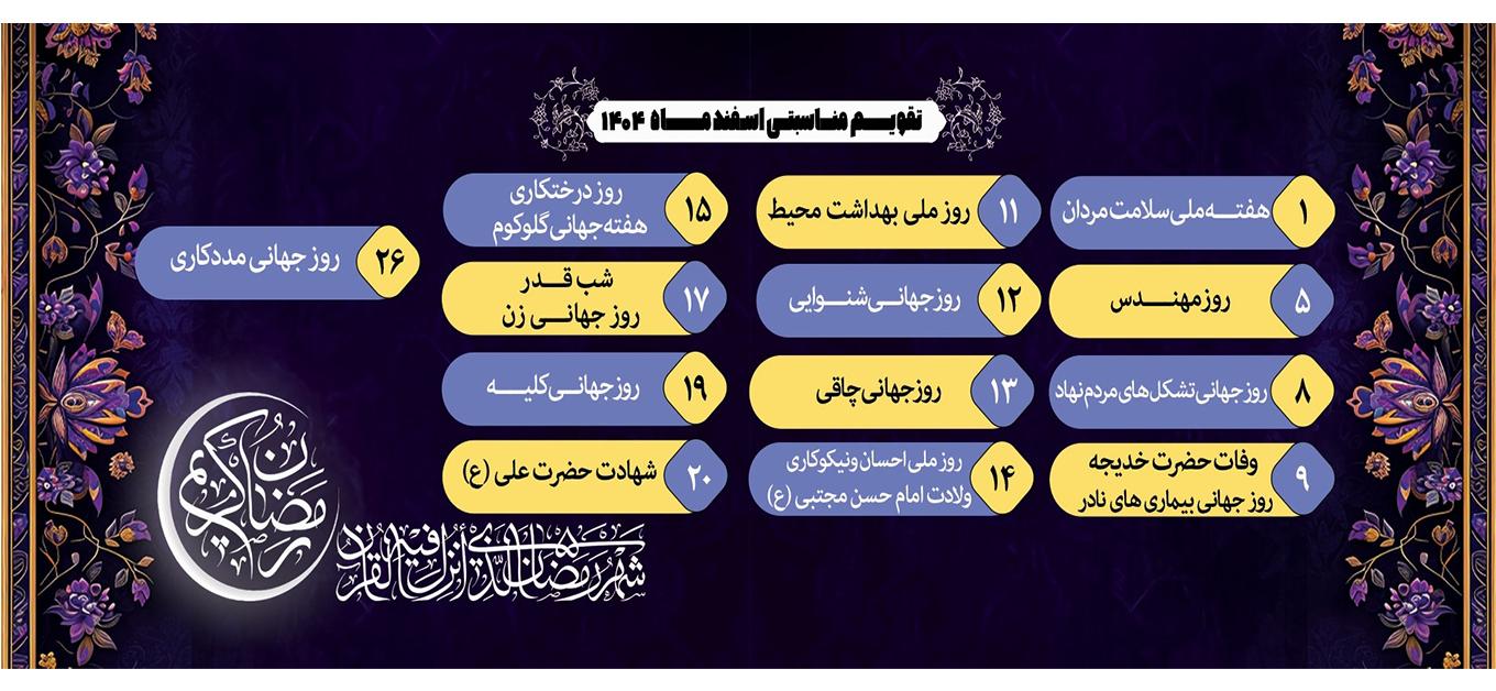۰۲ آبان ۱۴۰۳ | ۰۸:۳۱ ۲۷ تقویم مناسبتی اسفند ۱۴۰۴ اعلام نتایج رتبه بندی موضوعی تایمز (Times) در سال ۲۰۲۶ میلادی و مقایسه آن با سال قبل افتتاح سالن آموزش سلامت کلینیک تخصصی و مرکز آموزشی و پژوهشی خیرساز شهر بیارجمند امام خامنه ای (ره) جاودان بمان ۳۰ امین جشنواره قرآن و عترت بیمه تکمیلی سال ۱۴۰۴ همرسانی : لینکدین تلگرام واتساپ توییتر
