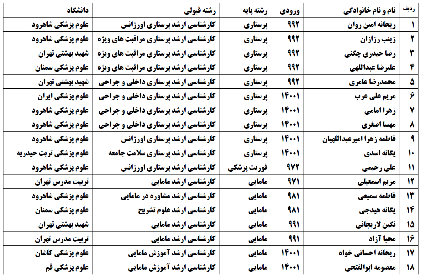 باکمال افتخار و سربلندی به اطلاع میرساند دانشجویان پرتلاش پرستاری، مامایی و فوریت پزشکی دانشکده پرستاری و مامایی دانشگاه علوم پزشکی شاهرود با تلاش و پشتکار مثال زدنی خود موفق شدند نتایج درخشانی در آزمون کارشناسی ارشد سال ۱۴۰۴ کسب نمایند.