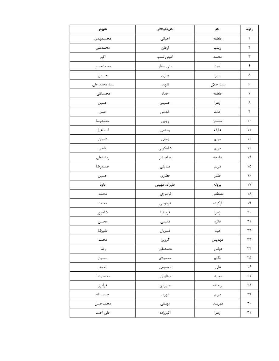 لیست داوطلبان حائز  شرایط سنی (براساس خود اظهاری) جهت شرکت در مصاحبه به شرح ذیل می باشد.